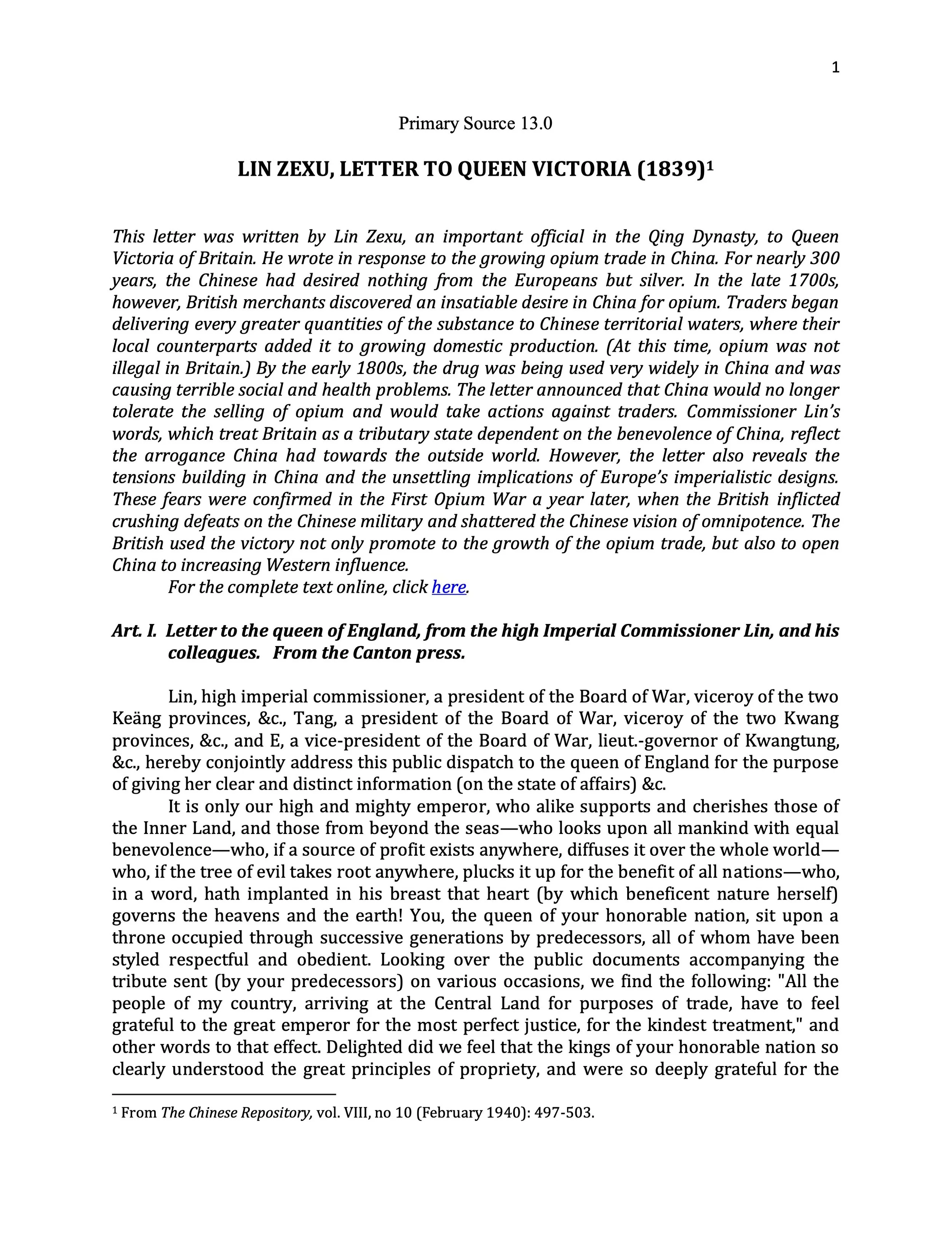 As an imperial official, I wanted to reform the practices of the Qing government and improve life in our society. I never imagined that my actions would lead to war with the British or affect generations to come, but I could not stand by while they defiantly sold opium within our borders.