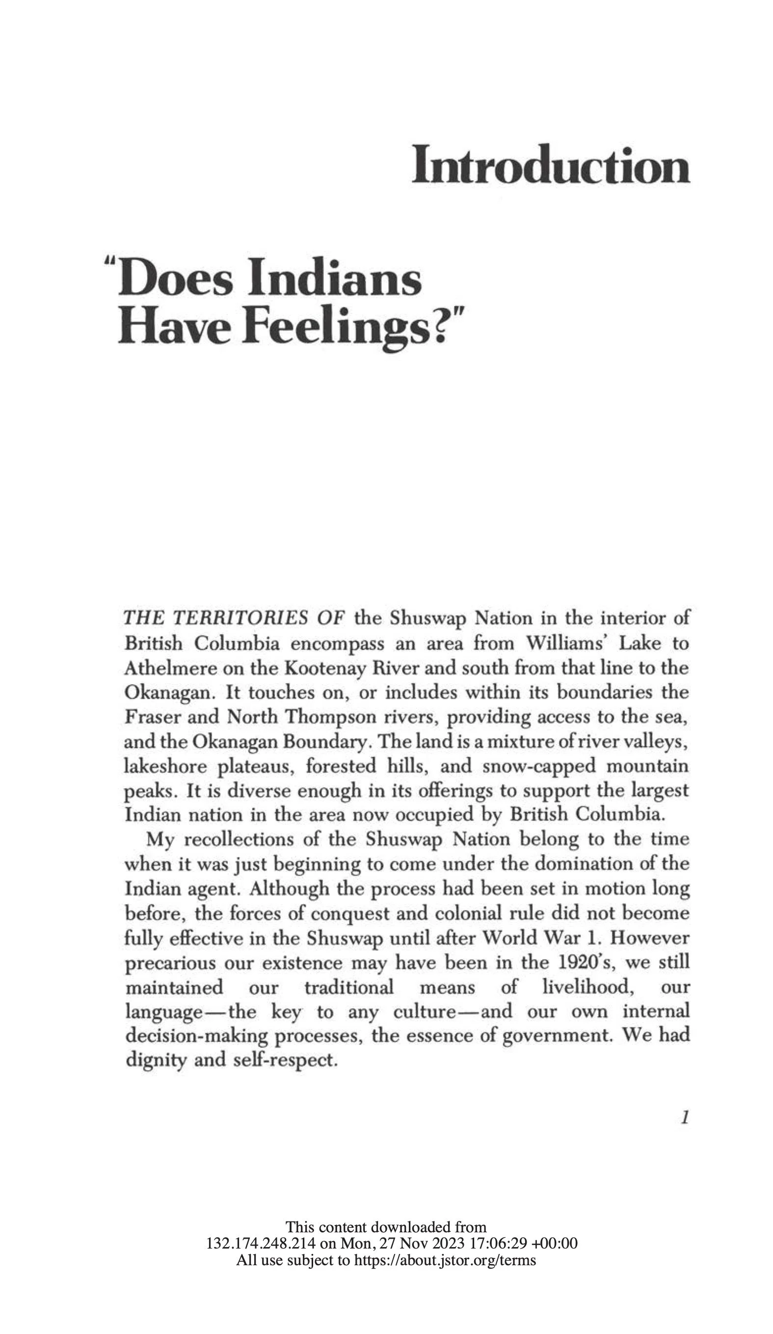 “Does Indians Have Feelings?”, An Introduction to George Manuel’s The Fourth World: An Indian Reality